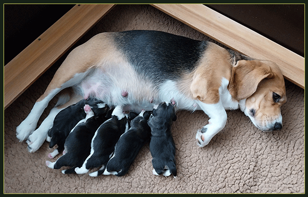 Lillis Welpen sind jetzt 14 Tage alt und alle fünf haben die Augen jetzt geöffnet ... |